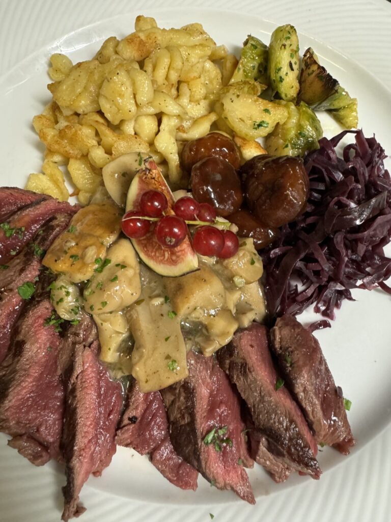 La cucina del Ristorante Montebello è un omaggio alla tradizione ticinese e lombarda, arricchita da influenze mediterranee. Lo Chef Ramon Pedrini, cresciuto a Bellinzona e formatosi con i migliori professionisti della ristorazione, ha saputo sviluppare un’identità culinaria che affonda le radici nel territorio. Nel suo menù troviamo piatti tipici come il fegato alla veneziana, i rognoni trifolati e le cosce di rana alla provenzale, accanto a proposte come il Cordon Bleu di maiale farcito con formaggio d’alpe. Ogni piatto è pensato per esaltare le materie prime locali, con un’attenzione particolare alla qualità e alla stagionalità degli ingredienti.