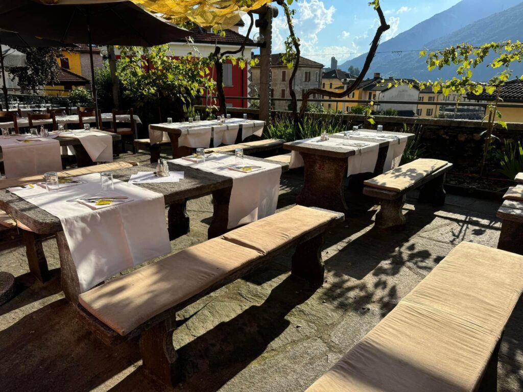 Situato nel cuore di Daro, una storica frazione di Bellinzona, il Ristorante Montebello è un vero gioiello gastronomico, diretto con passione dallo Chef Ramon Pedrini. A pochi minuti dalla stazione ferroviaria e facilmente raggiungibile in auto, questo ristorante si distingue non solo per la sua eccellente cucina, ma anche per la splendida location: una villa d’epoca con un’ampia terrazza pergolata che regala una vista mozzafiato sui castelli di Bellinzona, patrimonio UNESCO. È la cornice ideale per pranzi e cene indimenticabili, sia per coppie in cerca di una serata romantica che per famiglie e gruppi di amici.